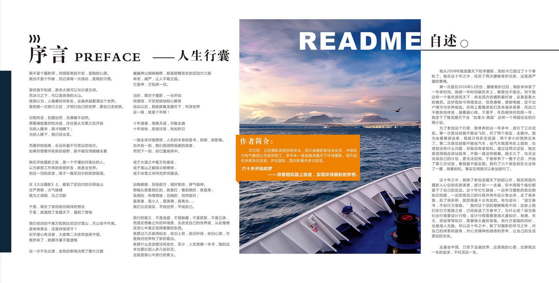 畫冊(cè)文字包括前言(序言、結(jié)束語)、章節(jié)說明、每張圖片說明。因?yàn)楫媰?cè)屬于比較個(gè)性化藝術(shù)品,文字表達(dá)幫助讀者理解作者的用意有很大幫助。