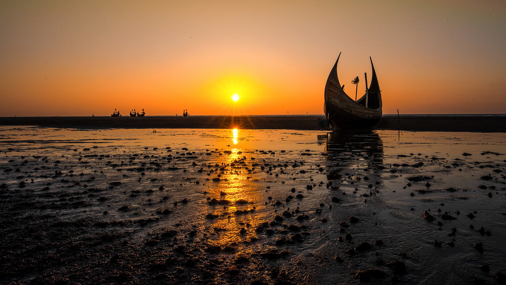 今天我們將驅(qū)車前往Moheskhali海灘,數(shù)百艘色彩繽紛的月亮形漁船排列在岸邊,漁民們將裝滿魚的漁網(wǎng)拉出海面,漁船、漁民的剪影,他們的網(wǎng)在水邊優(yōu)雅地伸展,在夕陽(yáng)的充滿活力的色調(diào)下變得空靈的形式。這些圖像充滿了寧?kù)o和敬畏的感覺(jué),喚起了人類與海洋之間永恒的聯(lián)系。